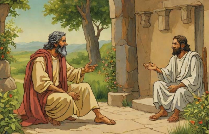 [Aesop told many fables. They were short stories which were used to teach wisdom. Jesus spoke in a parables and they have a similar feel to the Fables. So I decided to mash them together and produced a series of stories where Jesus tells Aesop’s Fables as though they were His parables.]